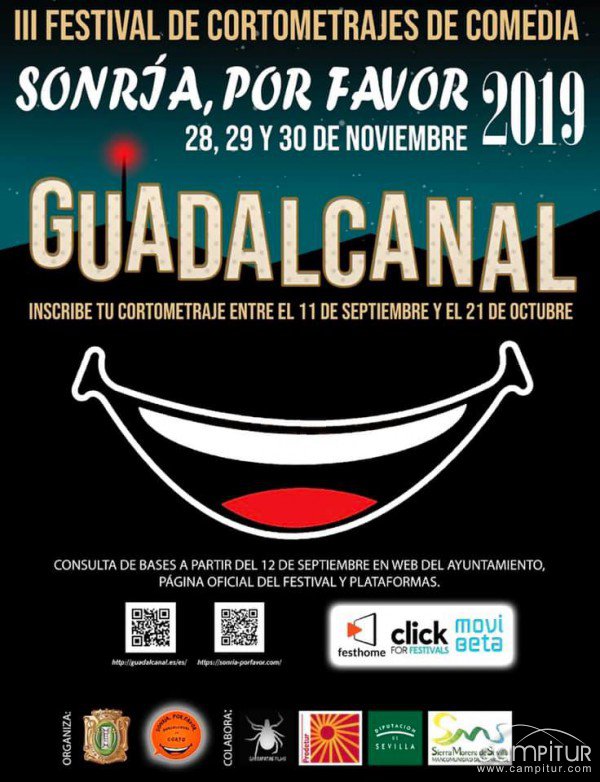 El Área de cultura del Ayuntamiento de Guadalcanal (Sevilla), convoca la III edición del Concurso de cortometrajes Guadalcanal en Corto “Sonría por favor”, que se celebrará del 28 al 30 de noviembre de 2019.