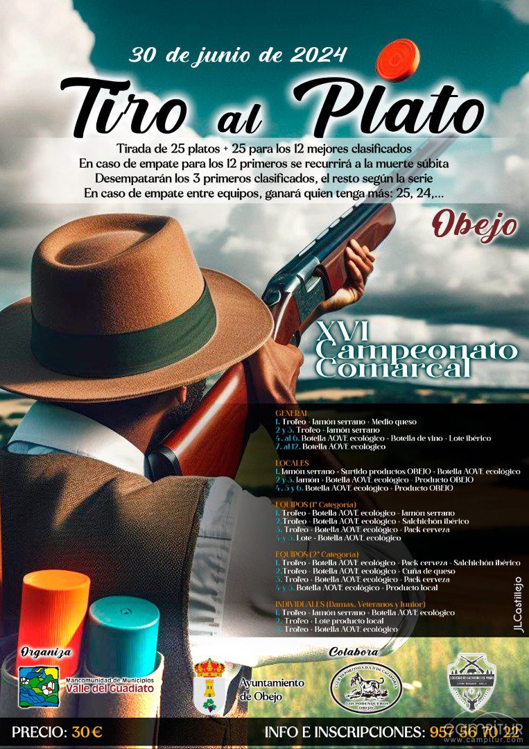 El próximo 30 de junio de 2024, Obejo se convertirá en el epicentro del tiro al plato con la celebración del XVI Campeonato Comarcal. Este emocionante evento reunirá a tiradores de toda la comarca del Valle del Guadiato para competir en una serie de desafíos diseñados para poner a prueba su precisión y habilidad.